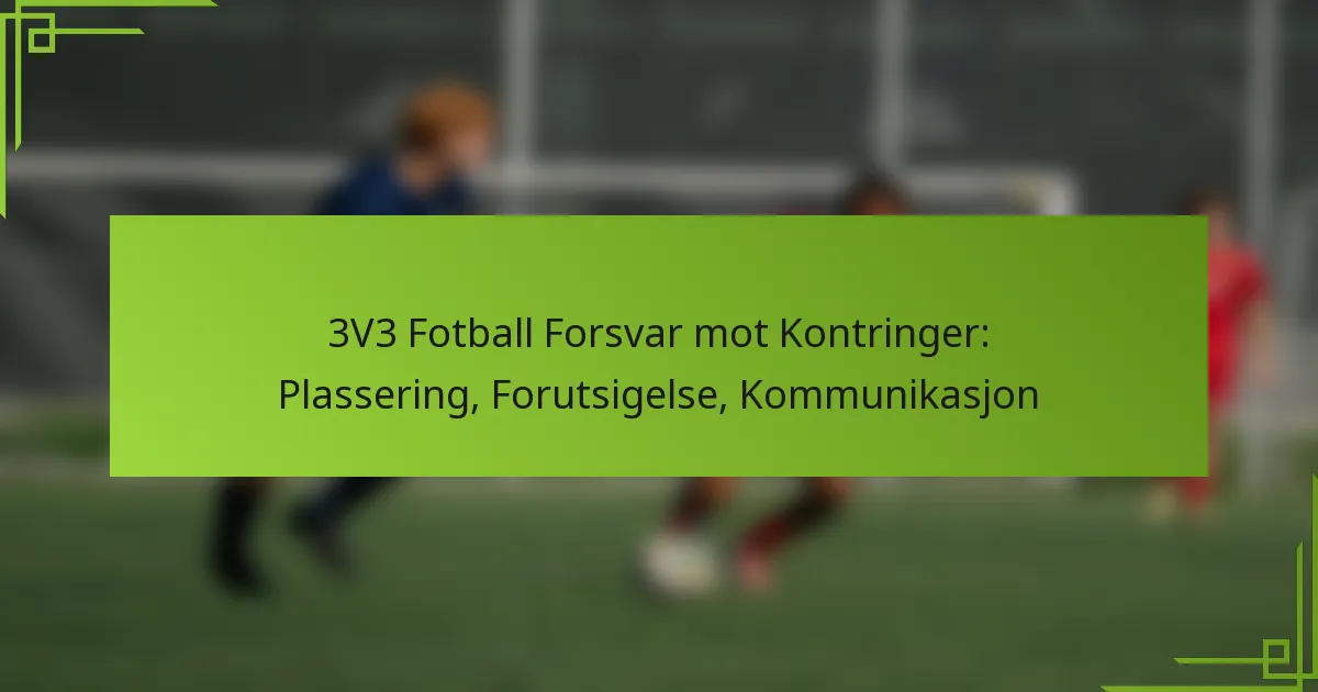 Å forsvare seg mot kontringer i 3v3 fotball krever en strategisk tilnærming som vektlegger effektiv posisjonering, anticipasjon og kommunikasjon. Ved å opprettholde bevissthet om spilleområdet og gjenkjenne motstandernes mønstre, kan forsvarere forstyrre angrep før de får fart. I tillegg forbedrer klar kommunikasjon blant lagkamerater koordinasjonen, noe som gjør det mulig å reagere raskt på potensielle trusler.