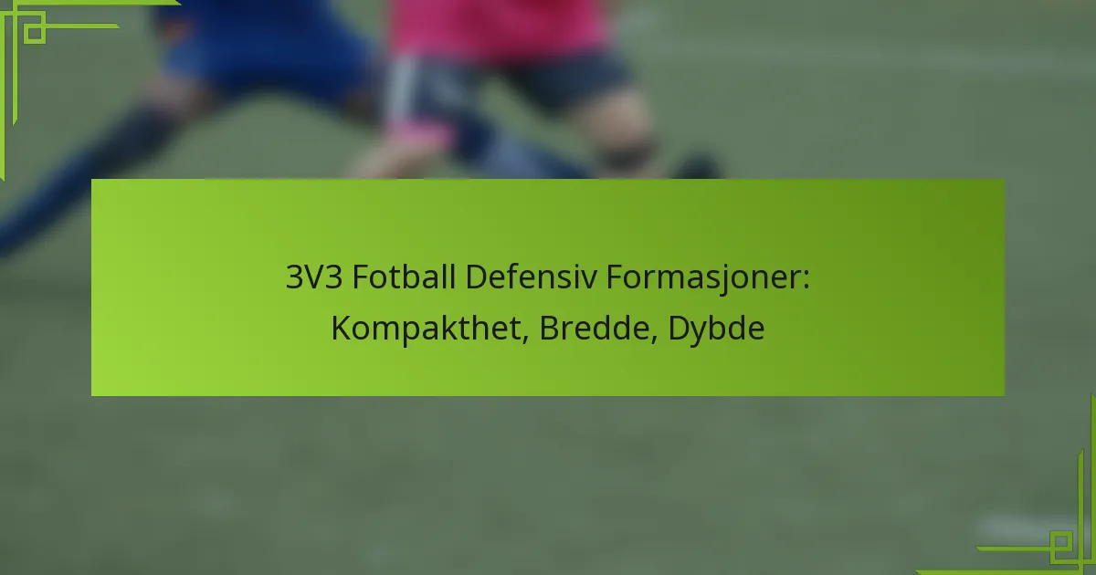 I 3v3 fotball er effektive defensive formasjoner avgjørende for å beskytte målet og gjenvinne ballbesittelse, med fokus på kompaktitet, bredde og dybde. Strategier som den flate trekanten, diamanten og boksen gir hver sine distinkte fordeler, som gjør at lag kan tilpasse seg forskjellige motstandere og situasjoner. Ved å prioritere kompaktitet kan lag skape en formidabel barriere mot angrep, mens opprettholdelse av bredde sikrer dekning over spilleområdet, forstyrrer motstandernes flyt og legger til rette for kontringer.