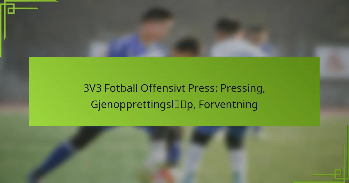 I 3v3 fotball er offensivt press avgjørende for å kontrollere spillet og skape scoringsmuligheter. Dette involverer taktikker som å presse motstanderne for raskt å gjenvinne ballbesittelse, gjøre gjenopprettingsløp for å opprettholde lagstrukturen, og forutsi spill for å utnytte defensive svakheter. Ved å mestre disse strategiene kan spillerne effektivt forstyrre motstanderne og forbedre sin offensive ytelse.